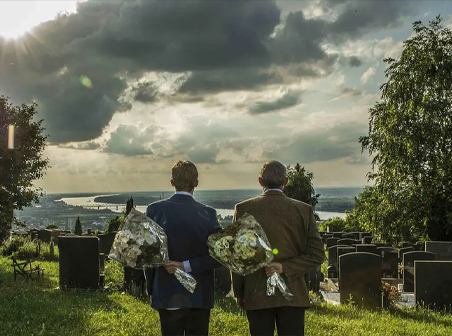 然后老易来到墓地献花